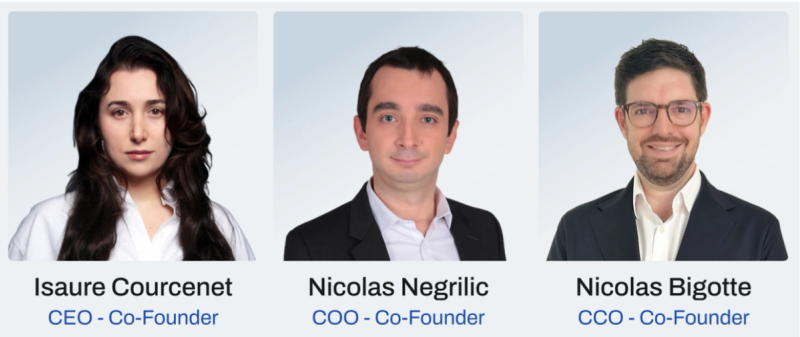 The founding team combines expertise in commodity markets, financial regulation, and digital market infrastructure. Isaure Courcenet was a commodities broker at a scale-up backed by the World Bank and has led digital infrastructure projects for the public sector in Europe. Nicolas Negrilic, formerly with HSBC, led the approval process at Shares, France's first MiFID and PSAN authorized fintech company. Nicolas Bigotte was the head of low carbon trading with BP and has more than 15 years of experience in the energy and finance industries.